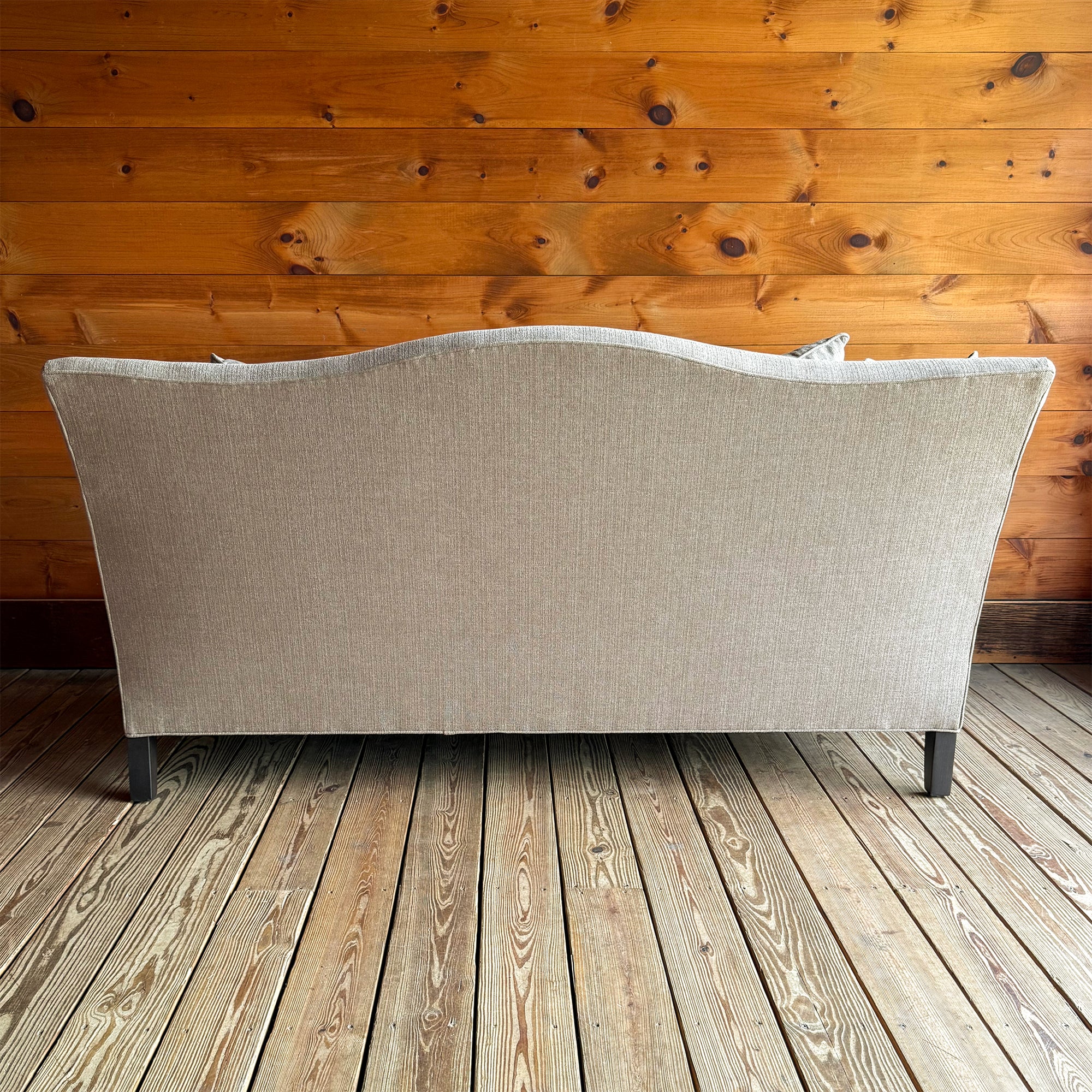 MADE TO ORDER... The Barton Apartment Sofa is a modern interpretation of the classic camelback silhouette. Its bench seat cushion, filled with a plush blend of 90% feather and 10% duck down wrapped in down-proof ticking, invites you to settle in and relax, while the gently angled tight back provides comfortable support. Finished with four down-filled pillows and tapered wooden legs, it strikes the perfect balance of comfort and style. The current production lead time is approximately six weeks.